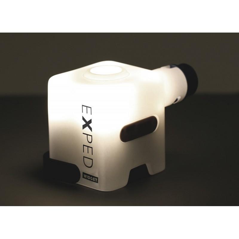 The Exped Widget Pump is equipped with a built-in lamp and power bank, making it convenient and versatile for all your pumping needs.