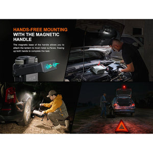 The Fenix CL27R Multi-Beam Rechargeable Lantern is the perfect light for various situations, such as industrial and vehicle maintenance, camping, fishing, and power outages. With a built-in magnetic handle and tripod thread, it offers versatile mounting options. Its impressive 285-hour runtime at 5 lumens is also great for emergencies.