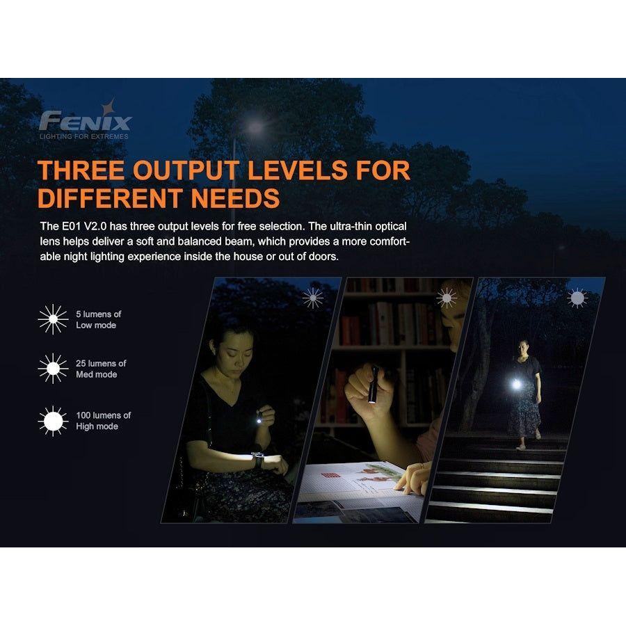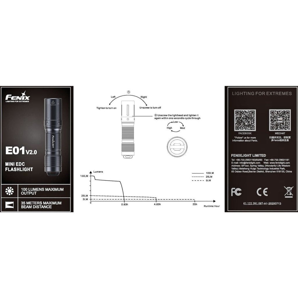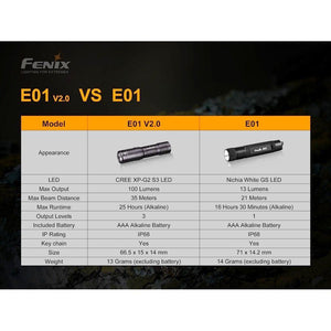 Fenix E01 V2.0 Miniature Flashlight - Black - Hill and Dale Outdoors