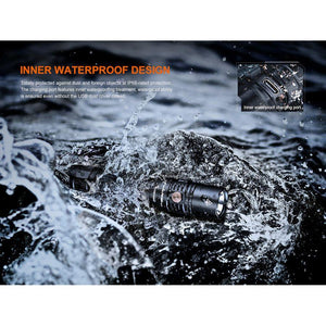 With 18w USB-C type charging, PD36R V2 can be fully charged from empty in just 2.5 hours using the supplied USB - USB-C charge cable and suitable mains / portable charger. The built in USB-C socket has an inner waterproofing which protects the light down to 2 meters depth even with the charge port cover removed.
