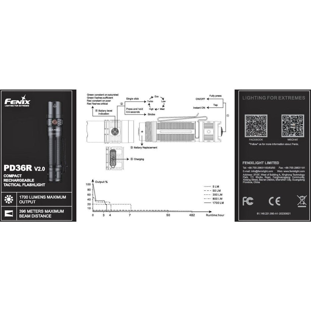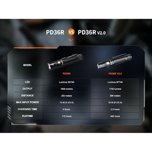 Fenix PD36R V2 LED Tactical Torch features: