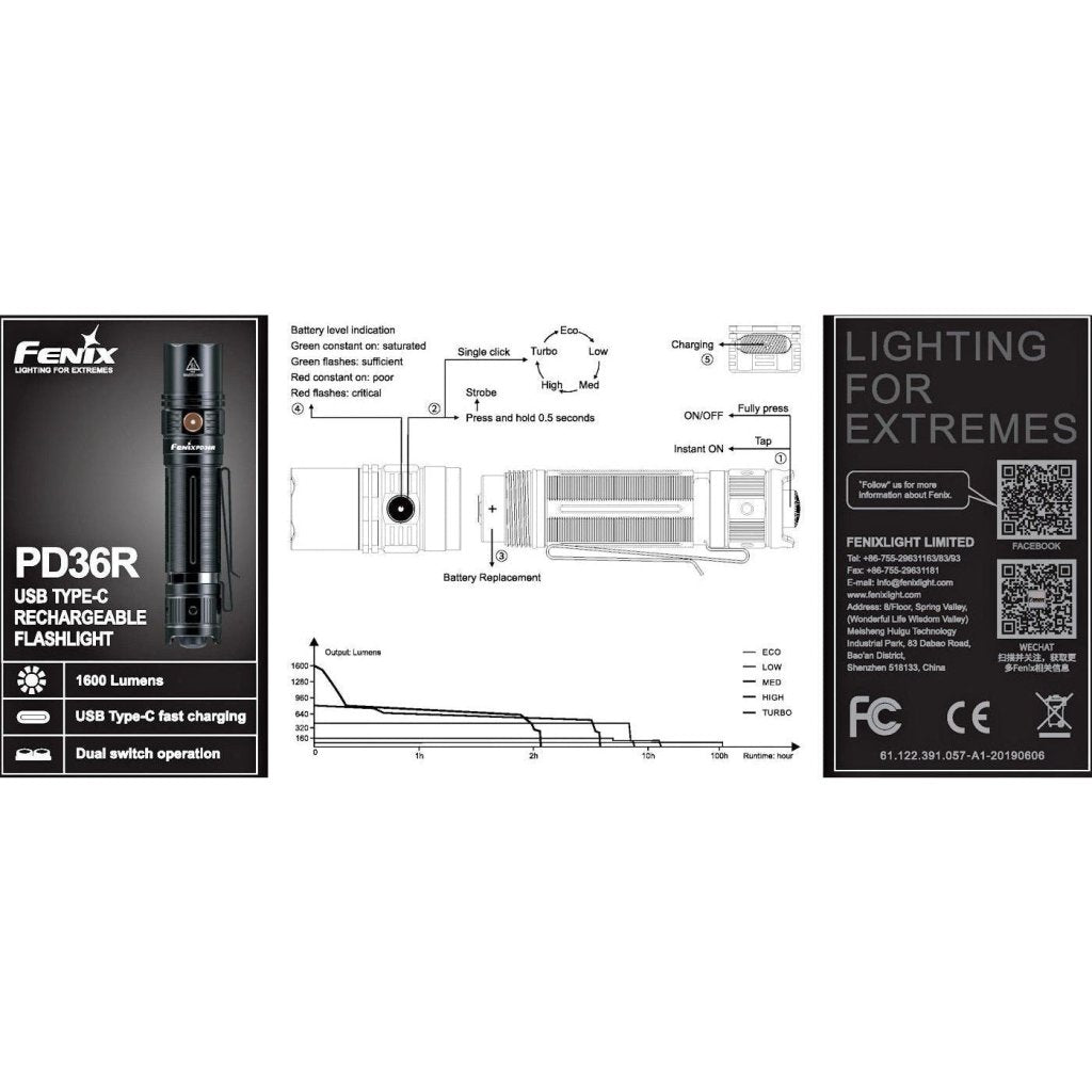 Fenix PD36R V2.0 USB-C Rechargeable Flashlight - Hill and Dale Outdoors