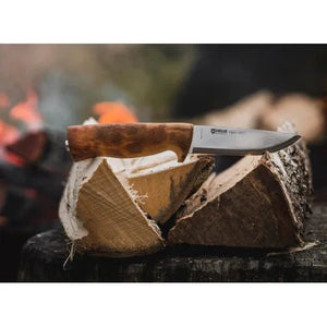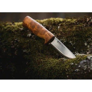 Experience the ultimate in quality and craftsmanship with the Helle Eggen 12C27 Knife. Made from a single piece of carefully selected curly birch, the handle is sanded and polished by hand to a stunning satin finish. With its well-proportioned finger guard, this knife not only exudes beauty but also ensures your safety.