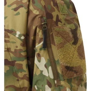 • 2 upper arm flush pockets with an internal wire access point and large flag stitched MultiCam® loop panels