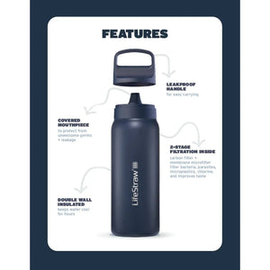 The LifeStraw Go Stainless Steel 1L Bottle is the perfect companion for ensuring clean and delicious water while on-the-go. Equipped with an advanced 0.2 micron membrane filter and a detachable carbon filter, this water bottle's straightforward design allows for easy refills without any setup required.