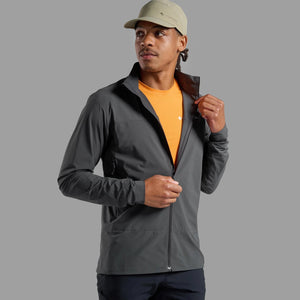 Finished with a bonded zip placket and harness-compatible hand pockets, this super lightweight softshell jacket is adaptable for long days in the mountains.