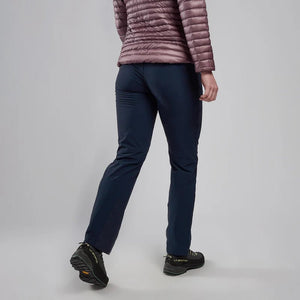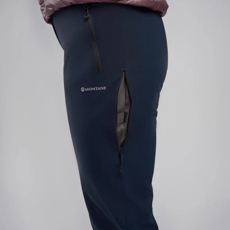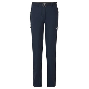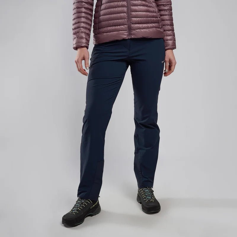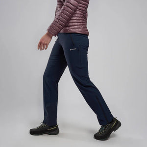 The Montane Women's Terra Stretch Pants in Eclipse Blue combine durable CORDURA® rip-stop fabric on the instep with flexible Raptor Flex 4-way stretch material for exceptional mobility and resilience. Designed with a regular fit, these trousers support a wide range of mountain activities, from hill walking to extended alpine expeditions. Engineered for active women seeking reliable performance and comfort, they deliver freedom of movement without compromising toughness, making them an essential choice for serious outdoor adventures.