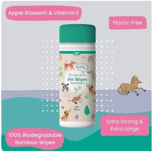 Introducing Nilaqua Pet Bamboo Biodegradable Pet Wipes - the perfect solution for keeping your pet clean while being kind to the planet. These Apple Blossom scented wipes are 100% biodegradable, making them gentle on the environment. With twice the thickness of regular wipes, they are perfect for mucky pups and come in a convenient canister with eco-refills available. Vegan friendly and free of parabens, these wipes are suitable for all pets and pH balanced for a thorough clean.