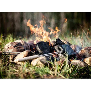 Enhance your camping or BBQ experience with the Petromax Cast Iron Sandwich Iron. Toast your favorite snacks with ease on the campfire or grill. The cast iron moulds provide perfectly crusty bread and juicy fillings. Enjoy delicious toasts, bagels, or dumplings with this durable and efficient sandwich iron.