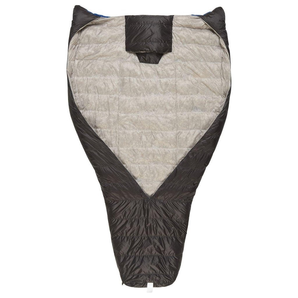 One part blanket, one part sleeping bag, all parts cozy. For thru hikers and ultralighters who prioritize their sleep after a long day or anyone who feels restricted by mummy bags, our ultra-lightweight, insulated DriDown™ Nitro Quilt 35°F tips the scale at a scant 1 lb, 6 oz and is the catalyst for a well-rested night on the trail. An oversized comforter made from durable nylon ripstop drapes over your upper body and tapers into a traditional bag design at the feet, giving you freedom to roll into your favorite position without kicking off the covers while you sleep. Insulated hand pockets keep the warm air in, and a hideaway hood with an opening for your mouth and nose lets you cinch up the comfort while still letting you breathe.