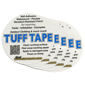 Our Stormsure 'TUFF Tape' Self Adhesive Waterproof Repair Patches are made of a tough, yet thin, polyurethane film with a pressure-sensitive adhesive. The pre-cut patches in this 5-pack are ideal for quick repairs to tarps, boots, and more - providing a durable waterproof seal for even the toughest of outdoor conditions.